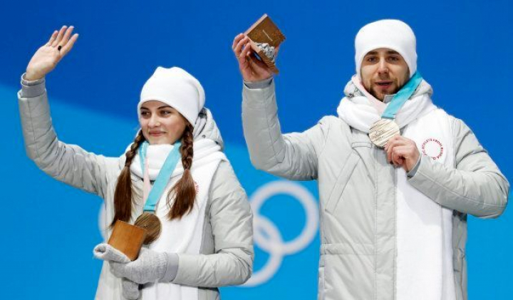 Sin embargo, si esta joven de 25 años ha sido noticia estos días es por lograr la medalla de bronce junto a su compañero y marido Aleksandr Krushelnitckii, por detrás de las parejas canadiense y suiza, oro y plata respectivamente.