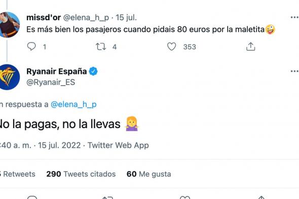 Una usuaria contestó asegurando que, más bien, se trataba de “los pasajeros cuando pidáis 80 euros por la maletita”.