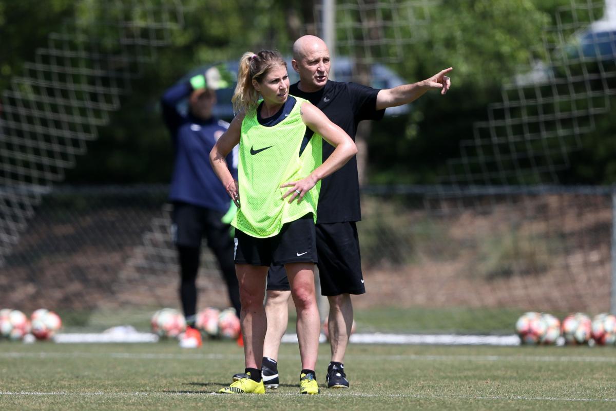 El entrenador Paul Riley, con la jugadora McCall Zerboni.Andy Mead/YCJ/Icon Sportswire via Getty Images