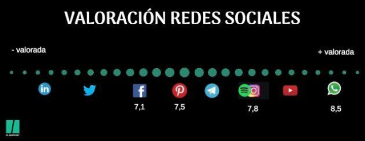 La tendencia al alza de Instagram se confirma cuando hablamos de valoración. Aunque es WhatsApp la que se lleva la mayor puntuación (8,4 sobre 10), Instagram se posiciona como la tercera más valorada con una media de 7,8, tres décimas por encima de la media en la que se sitúa Pinterest, con un 7,5. La segunda del ranking es YouTube. Facebook baja respecto a 2017 y se coloca como la séptima más valoradas con un 7,1. En 2017 la puntuación era de 7,4.