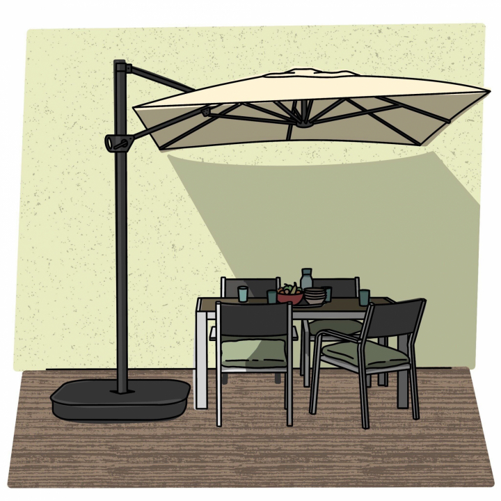 Si le da el sol, ten en cuenta también una opción para tener sombra: puedes instalar una pérgola permanente o una gran sombrilla que puedas apartar los días que no haga mucho calor.