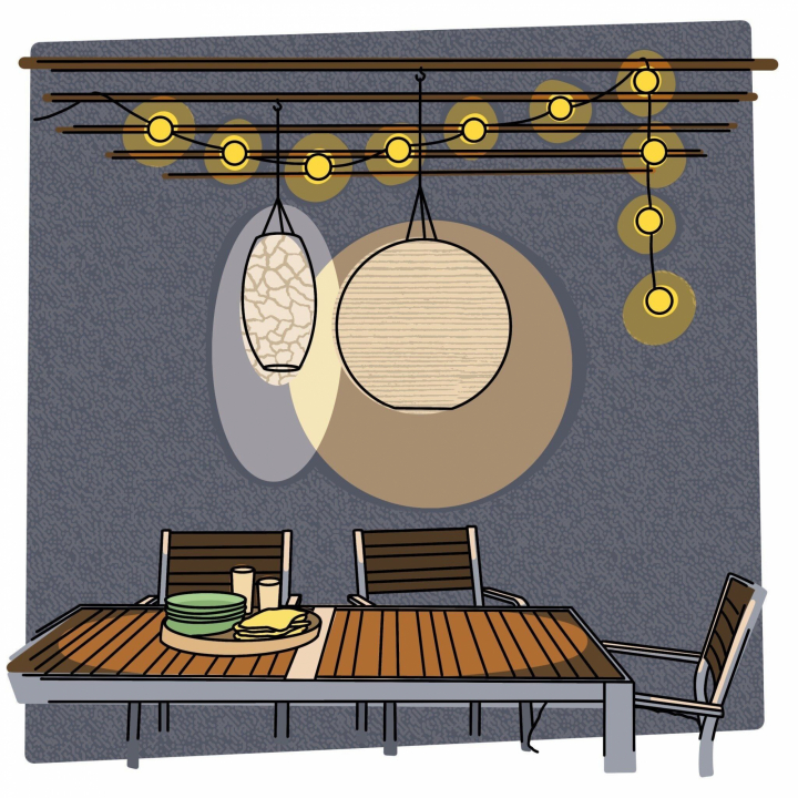 Por último, no olvides la iluminación. Una guirnalda de luces puede hacer de tu espacio exterior un auténtico oasis para tus noches de verano. Hay multitud de opciones, diseños y colores de lámparas para exterior, que además suelen incluir un pequeño panel solar para recargarse durante el día y ahorrar energía.
