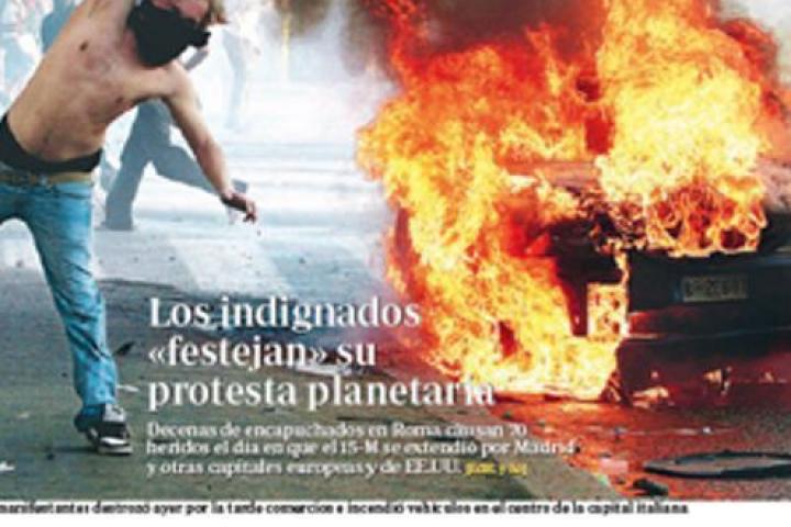 Casi una película de Truffaut, pero no, otra vez ABC. Bajo el titular de “400 «profesionales» de la algarada agitan Madrid contra el Gobierno”, el diario parecía querer reflejar una profesionalización en los indignados, después de que en febrero de 2012 tuviesen lugar incidentes ante la sede del PP, Génova 13.