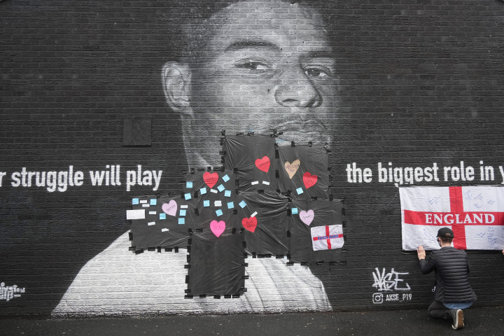 Además, el mural en honor al futbolista Marcus Rashford ha aparecido vandalizado con graffiti. La obra de arte situada en Withington, Manchester, fue desfigurada poco después de que Inglaterra perdiera la final del campeonato.