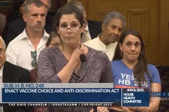 Esta sanitaria se llevó a la Cámara de Representantes de Ohio una llave para demostrar que la vacuna provocaba imantación. Primero se la pegó al pecho, donde sí que se quedó fijada. Entonces pidió al resto de los participantes que le explicaran a qué se debía.