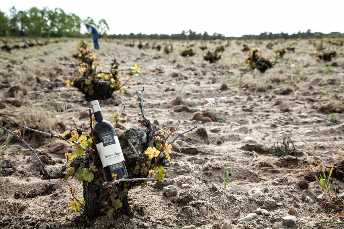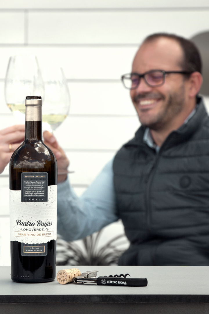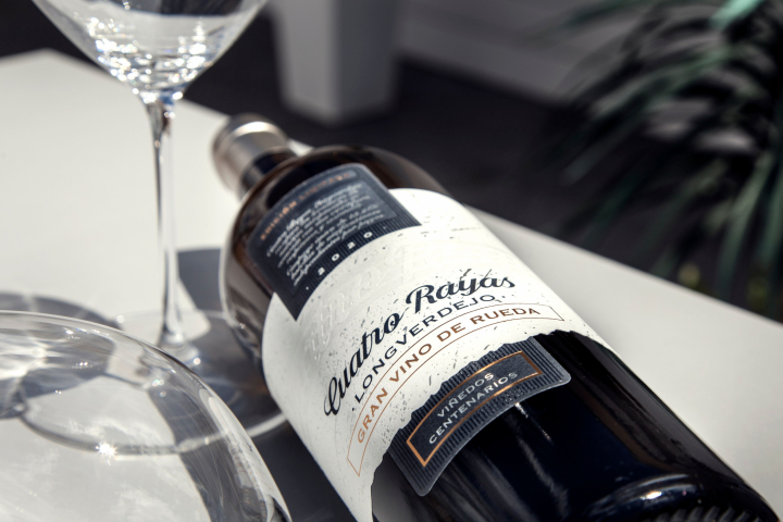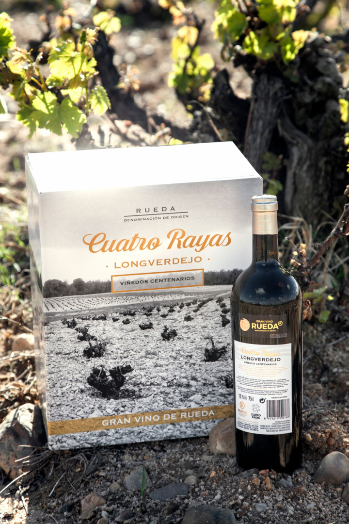 El proyecto cristaliza en una elaboración muy especial: Cuatro Rayas Longverdejo Viñedos Centenarios 2020, un vino muy complejo y equilibrado, elaborado a partir de un coupage que refleja fehacientemente los terruños de donde proviene. Para su elaboración se ha empleado uva Verdejo de viñedos viejos localizados en Aldeanueva del Codonal (Segovia) -de tierra de pinar más arenosa- en los que predomina la acidez y el nervio en boca, la fruta fresca y la mineralidad en nariz. Esas características fusionan a la perfección con la fruta más golosa y el hinojo de los viñedos de La Seca y Serrada (Valladolid) -de canto rodado- que aportan el volumen y la densidad en boca que marcan las zonas.