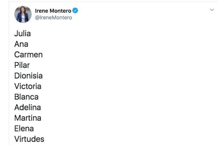 Fueron muchos los dirigentes políticos de izquierdas que recordaron la memoria de estas 13 mujeres, entre ellas la ministra de Igualdad, Irene Montero, que publicó el siguiente mensaje en su cuenta de Twitter.