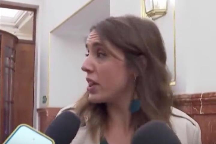 La ministra de Igualdad, Irene Montero, se ha pronunciado tajante en el pasillo del Congreso sobre los lamentables cánticos machistas que los alumnos del Colegio Mayor Elías Ahúja de Madrid han dirigido a las alumnas del Colegio Mayor Santa Mónica, localizado frente al primero.