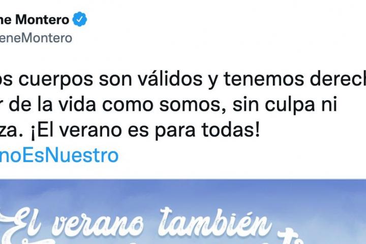 “Todos los cuerpos son válidos y tenemos derecho a disfrutar de la vida como somos, sin culpa ni vergüenza. ¡El verano es para todas!”, escribió la ministra.