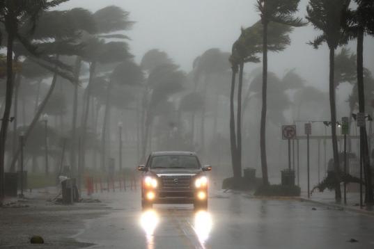 Un coche conduce por Ocean Drive en South Beach, el 10 de septiembre de 2017.