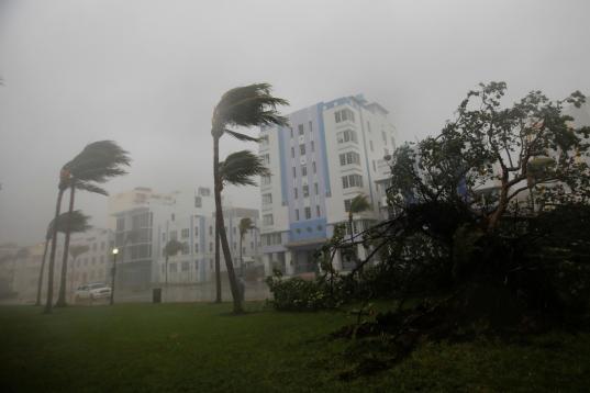 El viento golpea las palmeras y los edificios de Ocean Drive en Miami Beach, Florida, el 10 de septiembre de 2017.