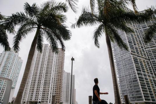 Un hombre mira los edificios de Miami la mañana del el 10 de septiembre de 2017.