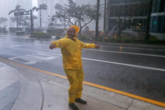 Un hombre lucha contra la fuerza de Irma en las calles de Miami, el 10 de septiembre de 2017.