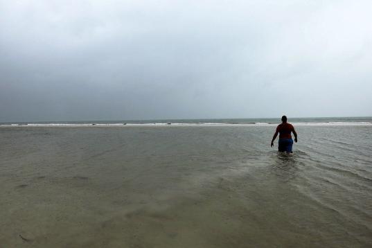 Larry Mewers se baña en Bonita Springs, Florida, el 10 de septiembre de 2017, a la espera de la llegada del huracán Irma.