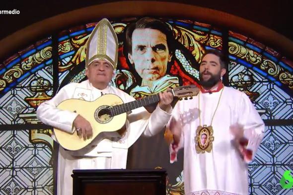 Los presentadores del programa El Intermedio —de laSexta–, El Gran Wyoming y Dani Mateo, se han convertido de nuevo en papa y monaguillo, respectivamente, de ‘la iglesia Aznariana’ para ironizar sobre las últimas palabras del expresidente del Gobierno, José María Aznar, quien el pasado martes criticó en un acto de FAES que algunos quieran “ganar 80 años después guerras que los españoles han olvidado y estigmas que no sienten”, en relación a la exhumación del dictador Francisco Franco.