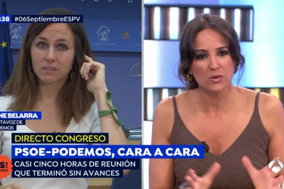 La portavoz de Unidas Podemos, Ione Belarra, ha asegurado este viernes -en el programa Espejo Público, en Antena 3-, que el presidente del Gobierno en funciones, Pedro Sánchez, “ha decidido ya llevar a nuestro país a elecciones en un hecho tremendamente irresponsable”.
