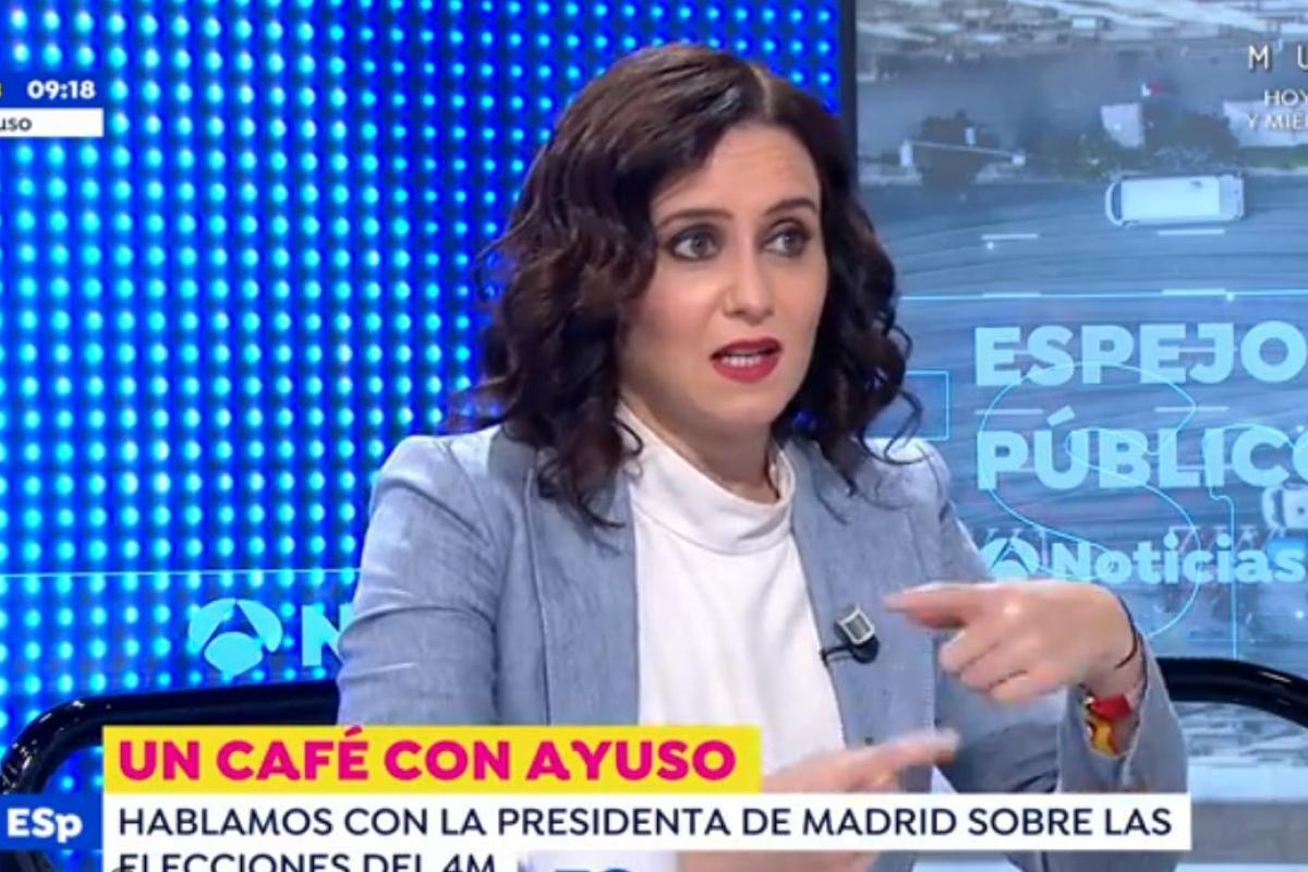 La presidenta de la Comunidad de Madrid, Isabel Díaz Ayuso, ha respondido en una entrevista en Espejo Público a los que la llaman loca o utilizan sus siglas para llamarla IDA.