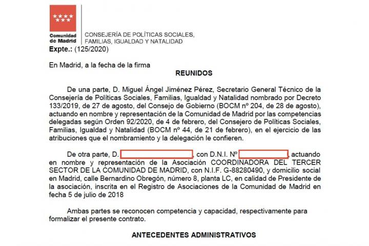 Madrid defiende la veracidad del contrato con la Coordinadora del Tercer Sector