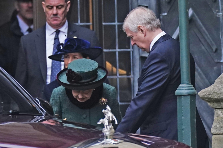 La soberana se ha desplazado esta misma mañana desde el Castillo de Windsor, donde reside desde hace meses, en un vehículo donde también viajaba su hijo Andrés, sentado junto a ella en la parte trasera del coche.