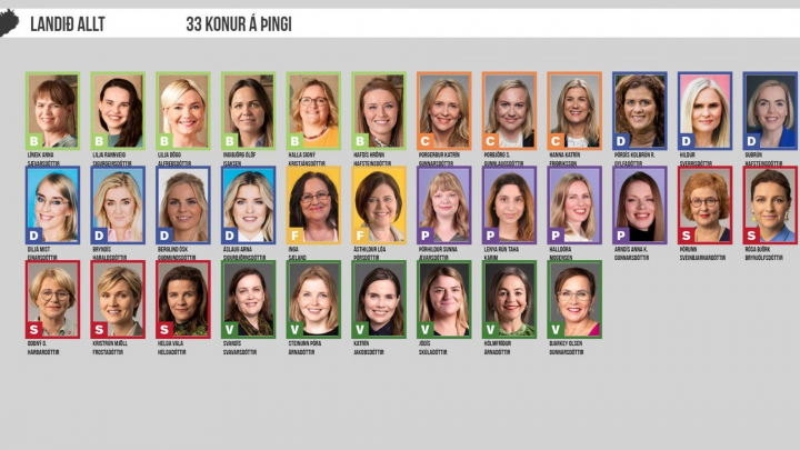 De los 63 diputados que componen el Alþingi (Parlamento), 33 serán mujeres, el 52,4%, informó la televisión pública Rúv.