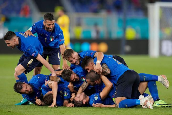 Locatelli celebra uno de los tantos italianos junto a sus compañerosAlessandra Tarantino - Pool via Getty Images
