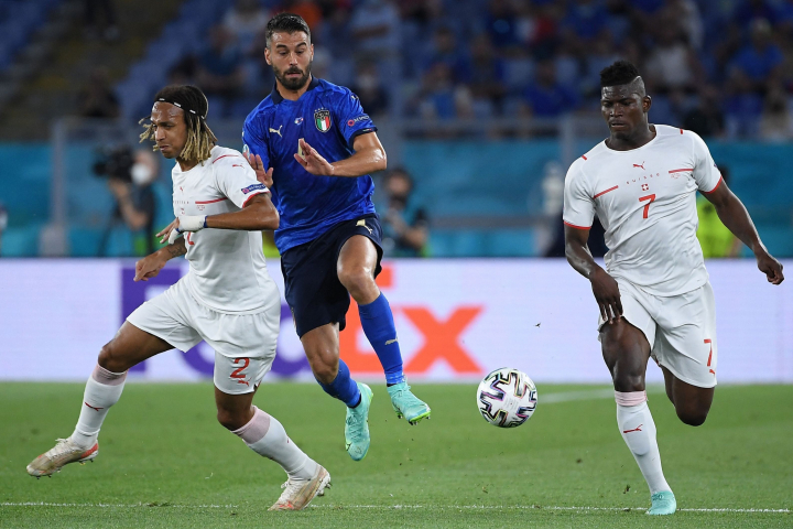 Guiado por la técnica de Leonardo Bonucci, uno de los mejores defensas de Europa en la salida del balón, de Jorge Frello “Jorginho”, el cerebro del Chelsea campeón de Europa, y por la velocidad de Domenico Berardi y Leonardo Spinazzola, Italia se adueñó del balón y anuló por completo el plan táctico de Suiza, que salió al campo del Olímpico decidida a presionar arriba.