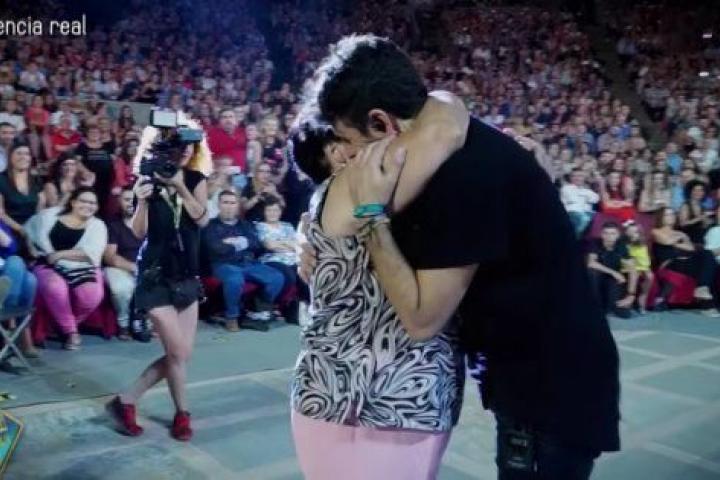 El músico dedicó parte de su actuación a Jacinta y recitó uno de sus poemas. Poco después, invitó a la anciana al escenario que se fundió en un emotivo abrazo con el cantante.
