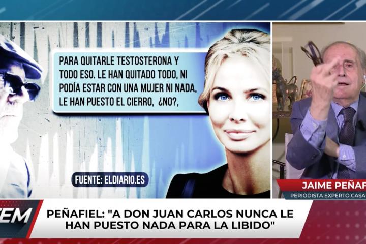 Al escuchar estas palabras leídas por una redactora pero dichas por Larssen, Peñafiel ha hecho una peineta a cámara de lo más indignado. Sobre lo de la libido del rey, el periodista ha afirmado que “no era un problema como cuenta Villarejo” y ha relatado que la abuela de Juan Carlos le dijo en una entrevista que su nieto “el pobrecito” era como Alfonso XIII “genéticamente Borbón”.