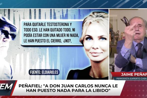 También ha visto unas declaraciones de Corinna Larsen, la “amiga entrañable” de Juan Carlos I, en las que decía algo similar a Villarejo: “Le han puesto un montón de hormonas femeninas para quitarle la fuerza. Para quitarle testosterona y todo eso. Le han quitado todo, ni podía estar con una mujer ni nada. Le han puesto el cierro, ¿no?”.