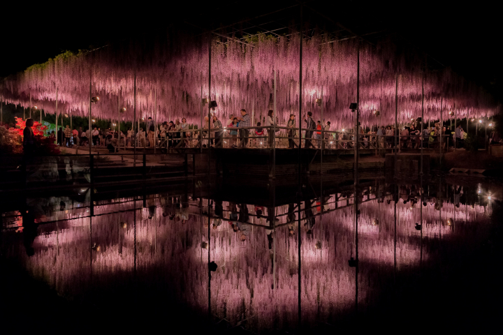 Hay dos paraísos de wisterias que los viajeros adoran. El primero es Ashikaga Flower Park, al que se puede llegar en tren desde Tokio, que reúne más de 350 glicinias en plena floración para el Great Wisteria Festival que se celebra entre el 15 de abril y el 22 de mayo. Lo ideal es visitarlo hacia la noche para ver la iluminación de los árboles y disfrutar un plato de noodles con sabor a Wisteria en su cafetería.