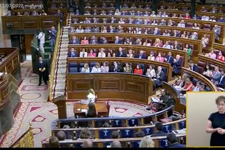 El senador del PP Javier Maroto, que está siguiendo el debate sobre el estado de la nación desde un escaño del Congreso, ha publicado en Twitter lo que ha visto hacer a Yolanda Díaz, vicepresidenta segunda del Gobierno, mientras el presidente del Gobierno, Pedro Sánchez, pronunciaba su discurso y anunciaba medidas para paliar los efectos de la crisis.