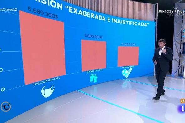 “Se pagaron 15 millones de euros por un millón de mascarillas, 2,5 millones de guantes y por 250.000 pruebas de antígenos. Pero lo que se paga, esos 15 millones de euros, no pagan la mercancía. De echo no pagan, fundamentalmente, la mercancía, lo que pagan son comisiones”, ha justificado el comunicador.