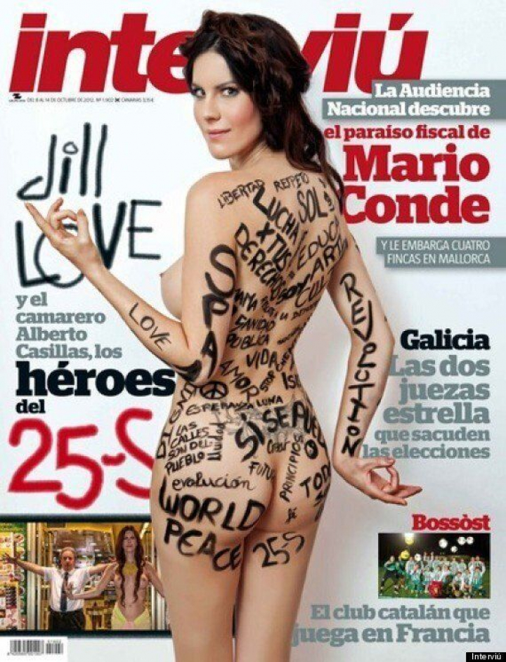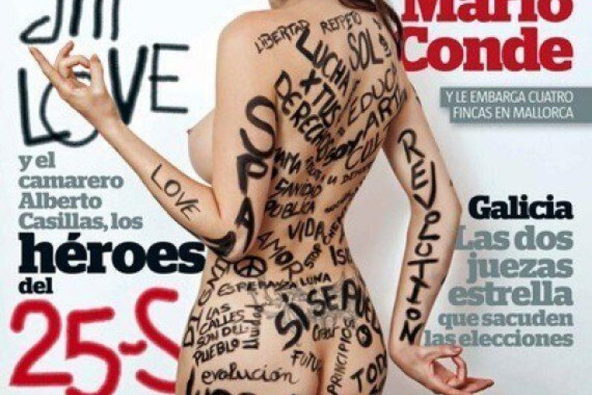 Unas semanas después consiguió incluso ser portada de interviú. “Su desnudo contra la violencia el 25-S en la plaza de Neptuno la convirtió en un símbolo. Pero ni es activista ni estaba preparado”, decía la revista, negando que la performance de la actriz tuviera como objetivo su salto a la fama.