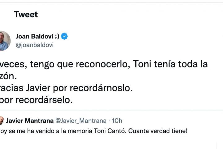 El diputado valenciano ha recogido la sentencia de Cantó de otro tuit y ha dicho en tono irónico: “A veces, tengo que reconocerlo, Toni tenía toda la razón. Gracias Javier por recordárnoslo. Y por recordárselo”.