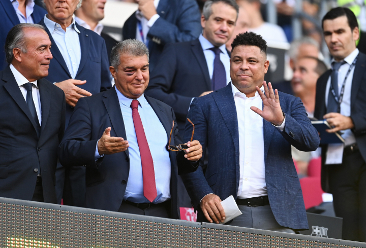 ¿Por la presencia de Ronaldo Nazario? También, sí, pero sobre todo por el rostro de Joan Laporta, presidente del Barcelona, que ha aparecido con el ojo derecho morado e hinchado.