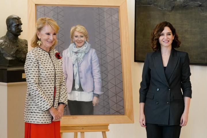 Este lunes, Isabel Díaz Ayuso ha descubierto el retrato institucional de la expresidenta regional Esperanza Aguirre, obra de Rafael Cidoncha, que pasará a formar parte de la colección de la Real Casa de Correos, sede del Ejecutivo madrileño.