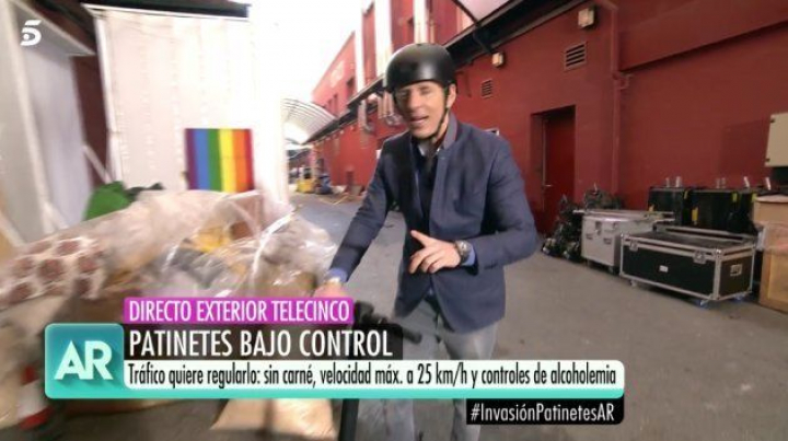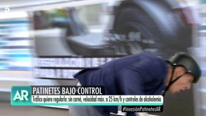 La regulación del uso de los patinetes eléctricos por parte de la DGT es uno de los temas más candentes de la actualidad. Tráfico quiere prohibir que vayan por la acera y a más de 25 km/h, entre otras medidas. Para explicarlas en El programa de AR, el colaborador Joaquín Prat se subió a uno y entró a plató sobre él desde los exteriores de Telecinco.