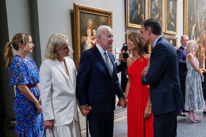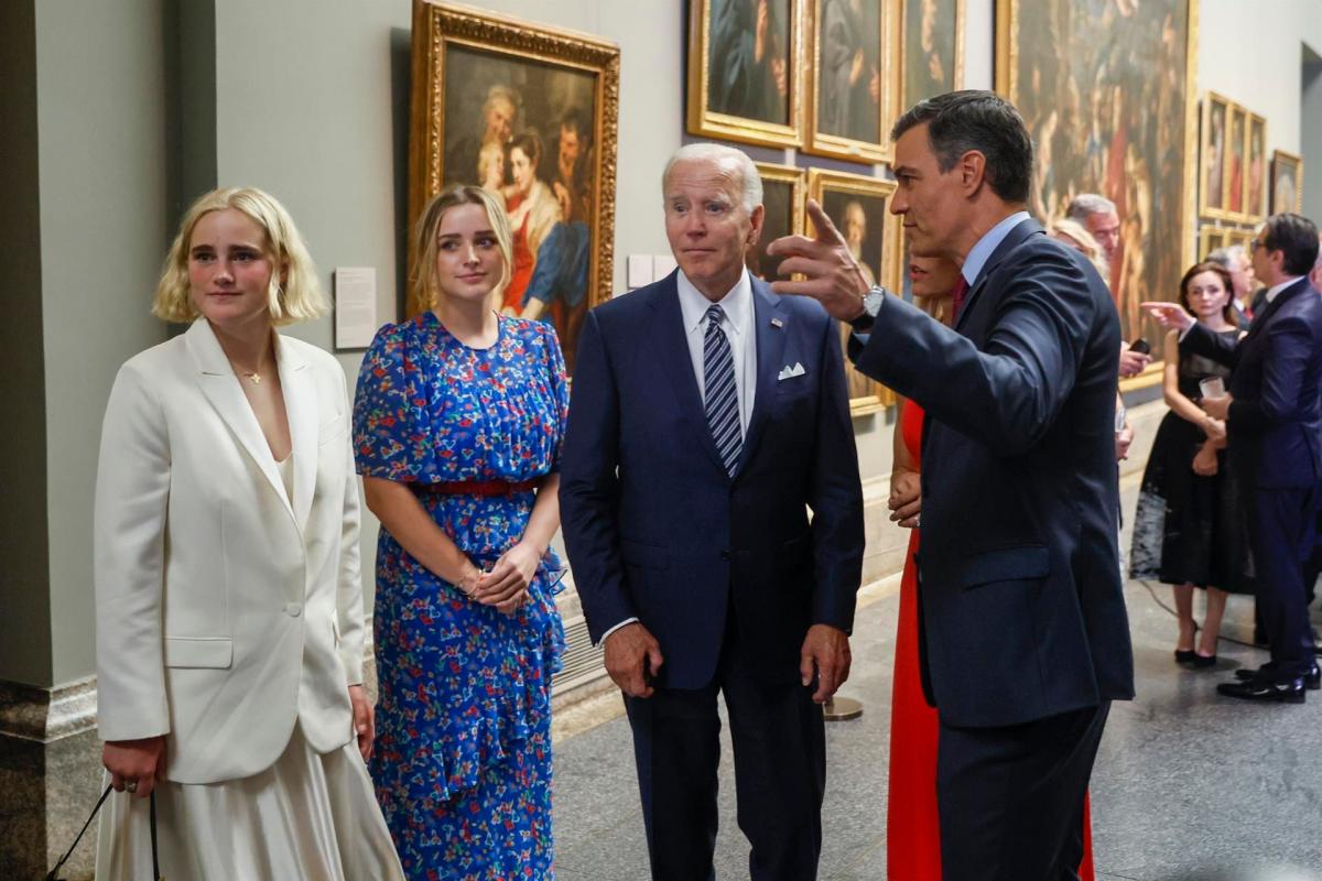 Las jóvenes, hijas pequeñas de Hunter Biden, han charlado de manera animada con Sánchez y su esposa, Begoña Gómez, y también han conversado con José Andrés, encargado de elaborar el menú de la velada. Las nietas de Joe Biden acostumbran a viajar con sus abuelos en muchos de sus desplazamientos al extranjero y, en esta ocasión, han entrado al museo de la mano de su abuelo.