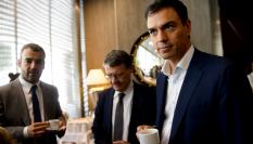 Presentación de avales del equipo de Pedro Sánchez en junio de 2014 para la consulta para secretario general. Entre sus enviados, Antonio Pradas (primero a la izquierda) y Estefanía Martínez Palop. Los dos dimitirían de su Ejecutiva el pasa...