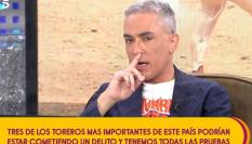 El presentador señala que él no estaba al frente del programa de Telecinco el día que se emitieron las imágenes —lo estaba Kiko Hernández—, pero señala que para el matador eso no importa. ”Él imagina —repito, imagina— que detrás de la emisión de esas imágenes está mi mano porque, como todo el mundo sabe, me comunico todos los días con Pedro Sánchez para recibir órdenes”, apostilla.