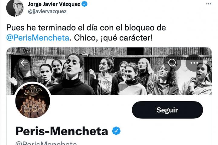 “Pues he terminado el día con el bloqueo de @PerisMencheta. Chico, ¡qué carácter!”, ha dicho el conductor de Sálvame finalmente.