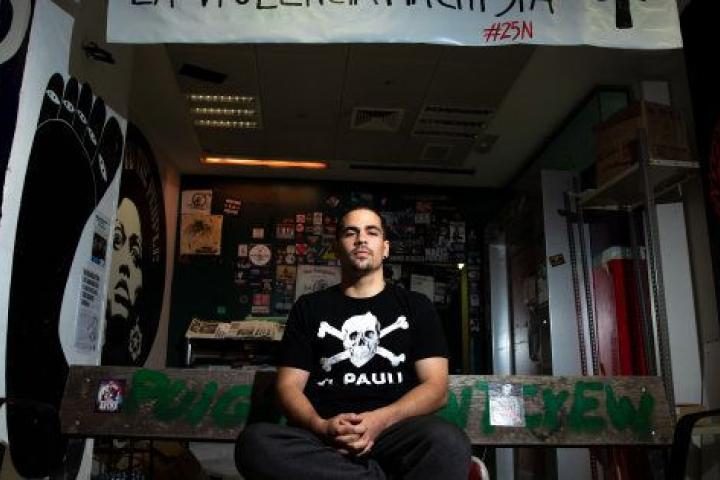 Admite estar nervioso por la espera. Está pendiente de recibir la carta de la jueza que le indicaría el día del ingreso en prisión. "Hay una sentencia firme", cuenta a El HuffPost en una mesa de reuniones de su local, cuyas paredes se cubren de murales hechos por ellos mismos de la famosa imagen del 'No pasarán' en Madrid, del símbolo feminista y de la famosa activista por los derechos civiles Angela Davis.