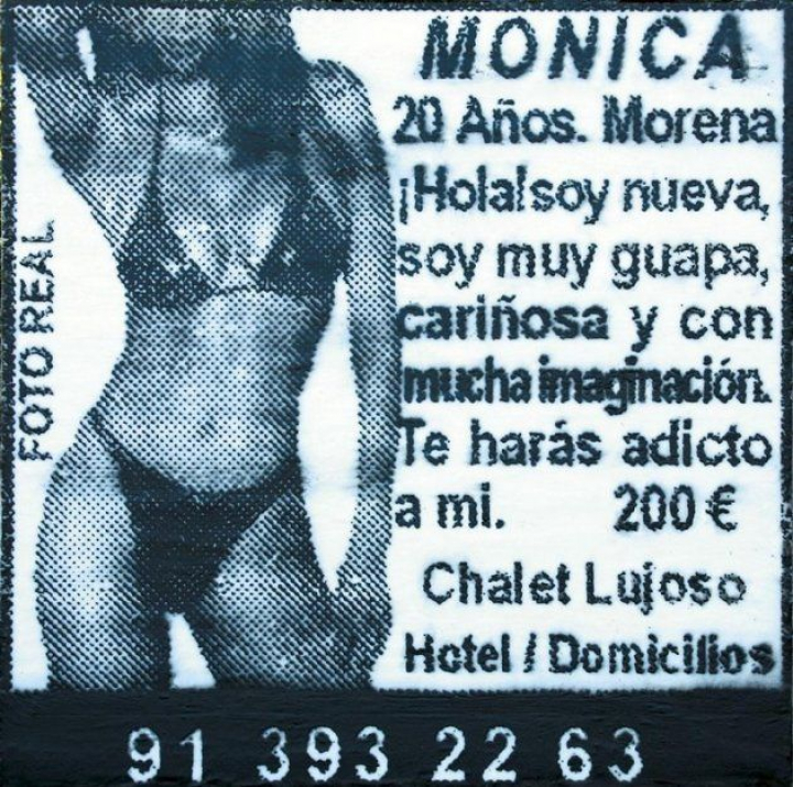 A partir de ahí, su obra empezó a cobrar forma. En 2002 empezó a pintar, y la mayoría de sus cuadros están hechos mediante una técnica llamada encaústica, mediante la que recubre los lienzos de cera. Así realiza sus retratos o sus cuadros hechos a base de octavillas de anuncios de prostitución.
