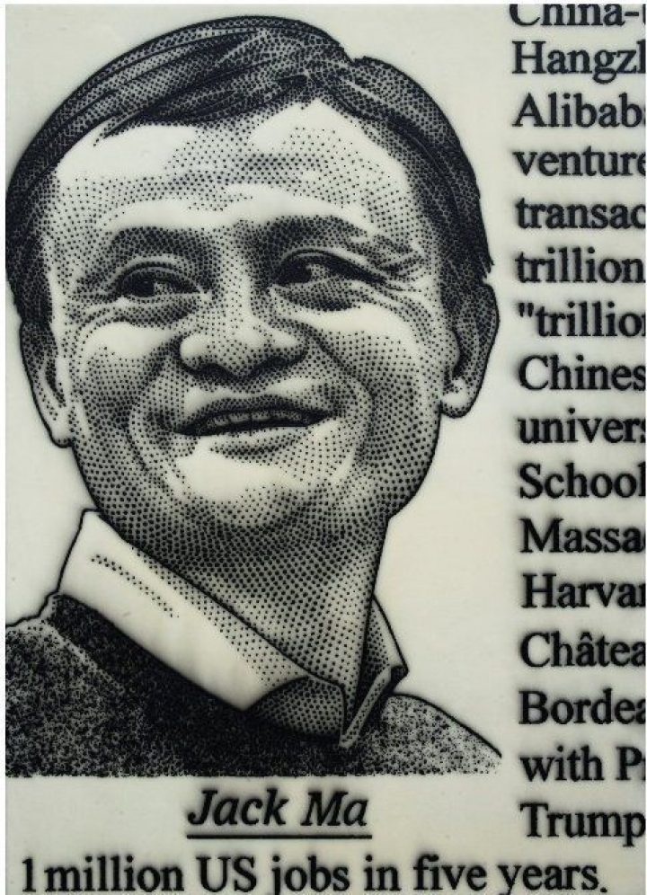Pero su gran éxito llegó el pasado abril, cuando salió a subasta a través de la casa Sotheby's —y no es el primer cuadro suyo que lo hace— su retrato de Jack Ma, el fundador de la web de compras AliBaba. Entonces su cotización, que estaba entre los muy estimables 50.000 y 80.000 euros por obra, se disparó: el cuadro se vendió por 388.000 euros. En total y mediante esta casa, ha subastado 13 obras por alrededor de un millón de euros.