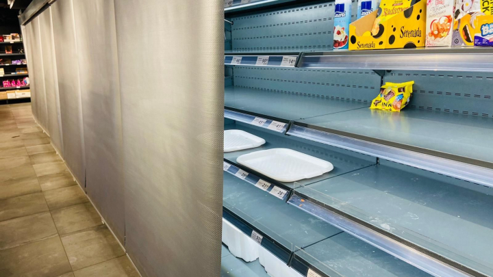 Los supermercados en Odesa estaban hasta ayer bastante abastecidos, aunque este martes comienzan a faltar productos como lácteos o carne: “Mañana comprobaremos si es por escasez o por el toque de queda”.