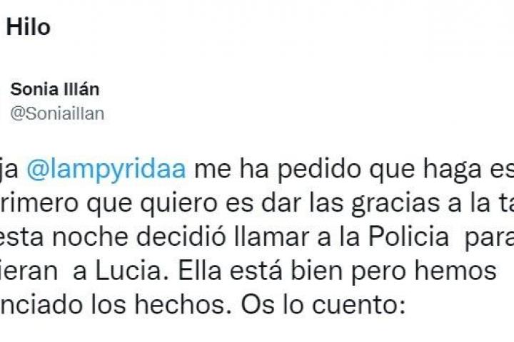 La periodista Sonia Illán ha compartido en redes sociales lo que le ha ocurrido este viernes a su hija, Lucía, tras pedir un taxi para regresar a su casa mientras esperaba en la puerta de un hotel de Murcia.