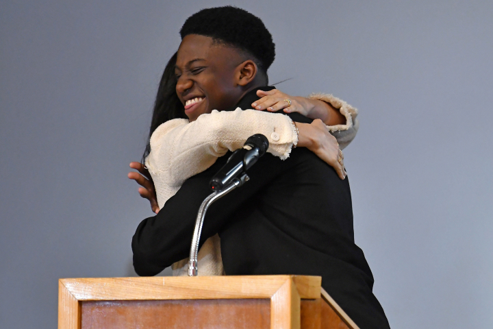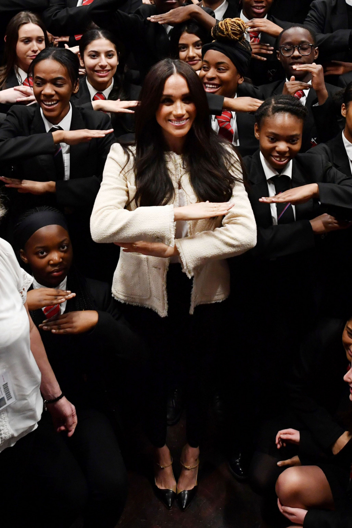 La duquesa de Sussex acudió a dar una charla con motivo del Día Internacional de la Mujer, lo que fue su último acto en solitario como miembro de la realeza. En un momento dado, Markle llamó al joven al escenario porque éste iba a hablar de por qué los hombres debían unirse a la lucha feminista.