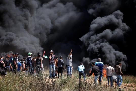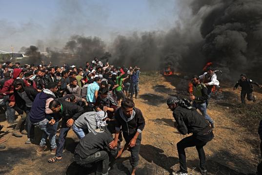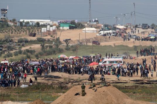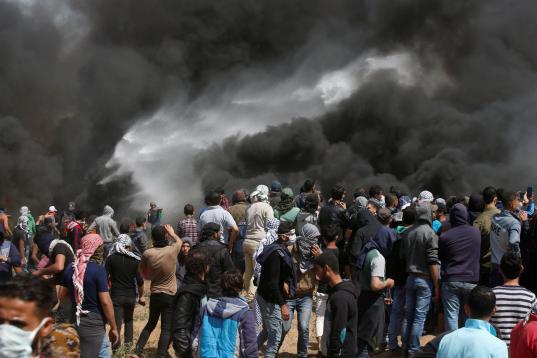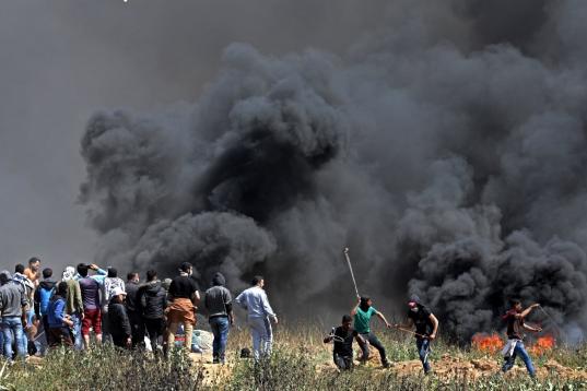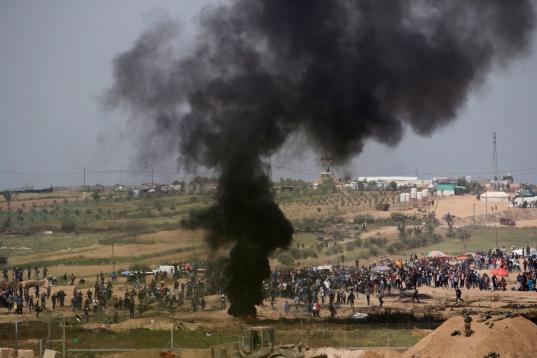 El ejército calcula que unos 10.000 palestinos marcharon hacia las fronteras de Israel con Gaza en cinco puntos y acusó a varios de ellos de intentar llevar a cabo "actos terroristas", incluido el lanzamiento de artefactos explosivos, bombas incendiarias y dañar la valla de seguridad bajo la protección del humo", informó un comunicado.
