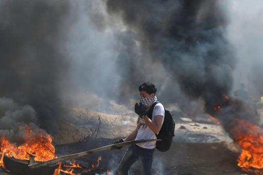 Por el momento, los jóvenes siguen con la quema de neumáticos que han estado recogiendo durante la semana para obstaculizar la visión de tiro de los soldados israelíes, que han insistido en que no permitirán a nadie acercarse a menos de 300 metros de la valla.