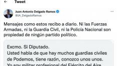 “Soy el primer guardia civil que llegó al Congreso de forma democrática. El anterior entró con una pistola”. Así describe Juan Antonio Delgado (San Fernando, Cádiz, 1971) su entrada en política hace ya seis años, cuando un entonces desconocido agente de la Guardia Civil fichaba por Podemos para formar parte de sus listas electorales.